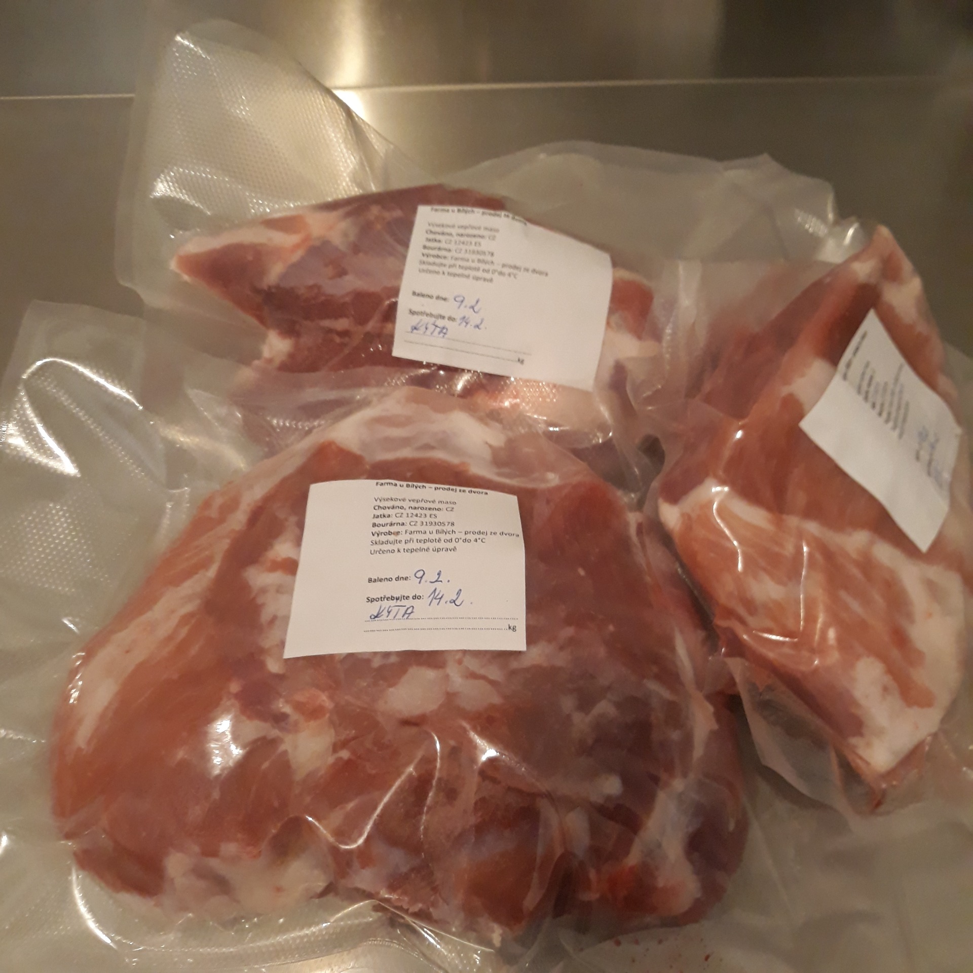 "směsný farmářský balíček" o hmotnosti +/- 10 kg a k těmto balíčkům nabízíme možnost si ještě dokoupit maso, (panenka,...). Tyto balíčky obsahují "kousek od každého"( maso je etiketováno, vakuově nebo strečově baleno a připraveno ke kuchyňské úpravě......)